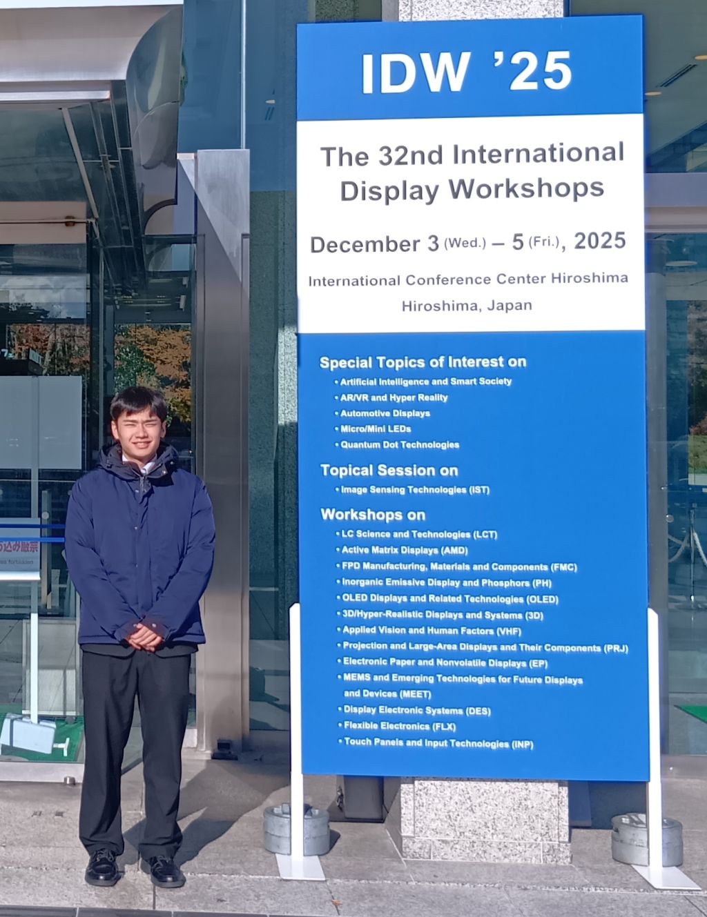 B4 白井 正真さんが広島で開催されたThe 32nd International Display Workshops (IDW'25)で口頭発表を行いました.(2025.12.3)
