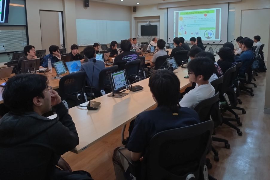 タイ・タマサート大学SIITとの合同ワークショップが開催され,M1 安藤颯さん,根本大雅さん,金子慧士さん,大瀧陽さん,Kazi Mosaddequrさんが参加しました.中口は初日のオープニングイベントに参加し,課題を発表しました.(2025.12.15-22)